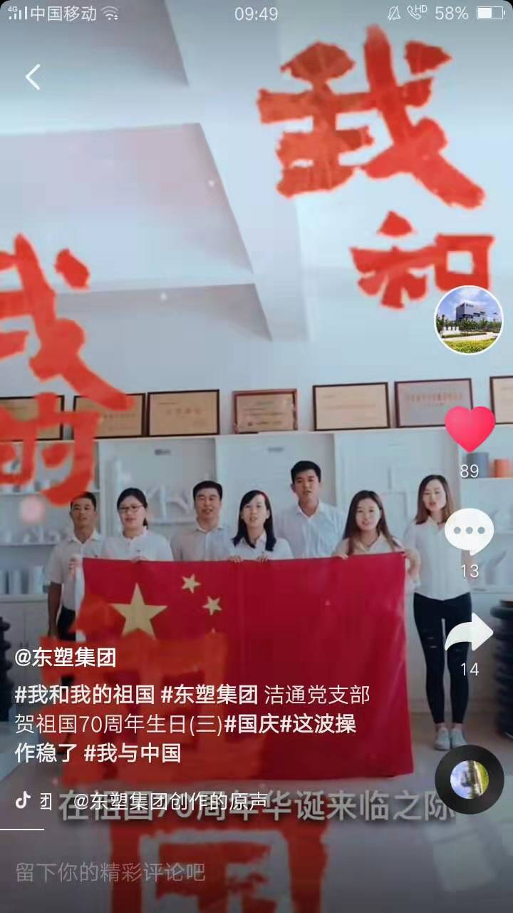 在祖國70周年華誕來臨之際,潔通塑料采取多種形式為祖國慶生。潔通公司作為潔通塑料的子司積極參與了集團舉辦的活動,為祖國獻上美好的祝福!